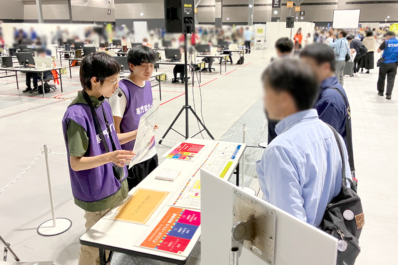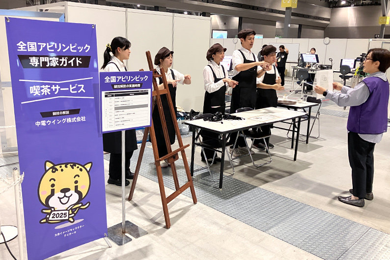 また、昨年に続き、製品パッキング・喫茶サービス・パソコンデータ入力競技では、競技解説ガイドも務めました。今年の全国大会も地元・愛知県国際展示場で開催されたこともあり、多くの方々が応援に駆けつけてくださいました。みなさまの温かいご声援のおかげで、選手や競技解説ガイドを務めたスタッフもリラックスして臨むことができました。応援、ありがとうございました。